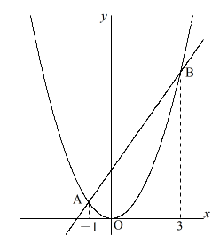 関数y=2x^2のグラフ上に2点A,Bがあり、x座標はそれぞれ-1,3である。